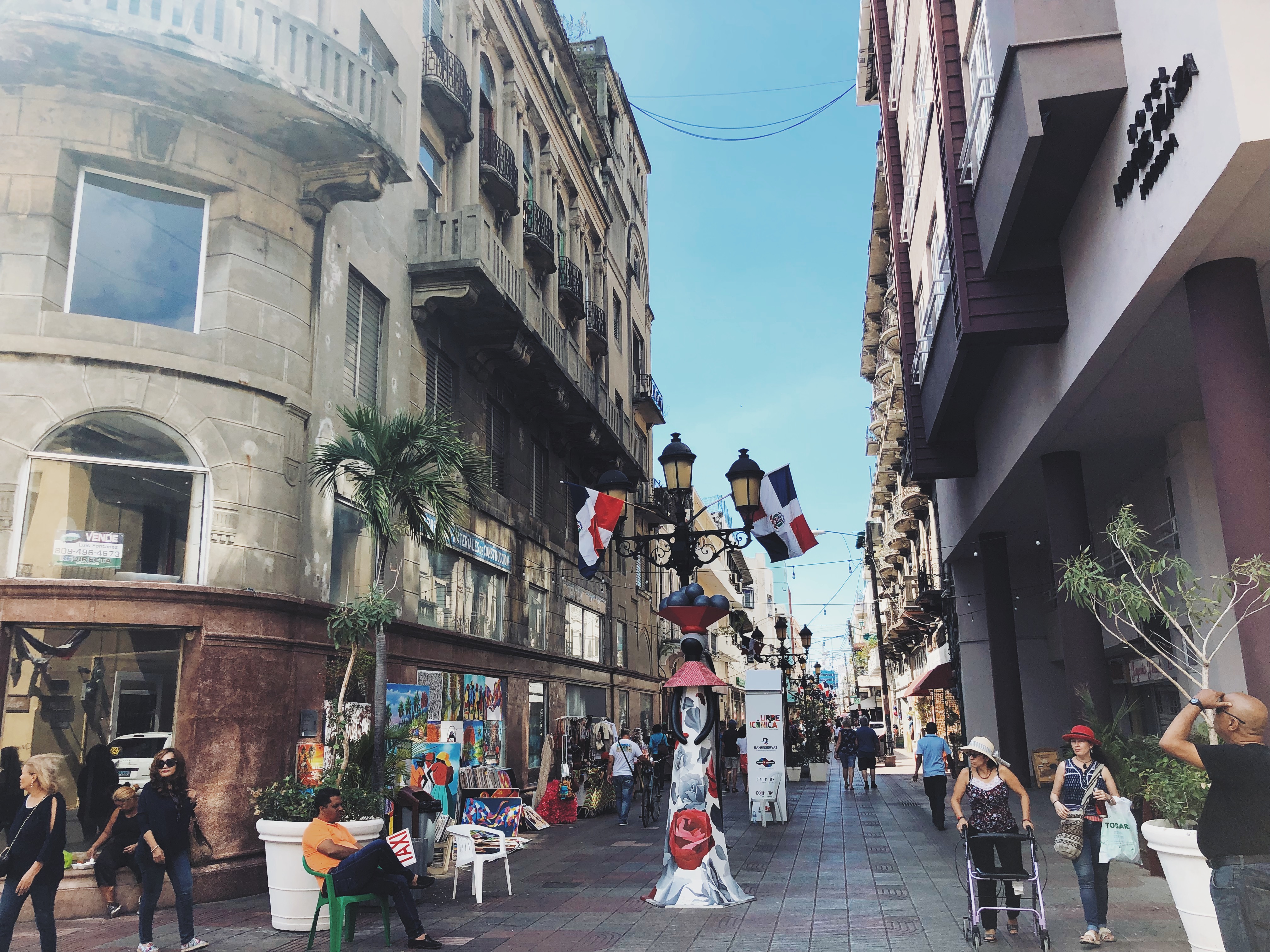El Conde was a street that had shopping and little restaurants. The streets were lined with people selling canvas art representative of Santo Domingo. I was so tempted to buy one, they were absolutely beautiful. One of my favorites was drawn from the picture above with the perspective on the bottom of the street, so make sure to look back on you way down.